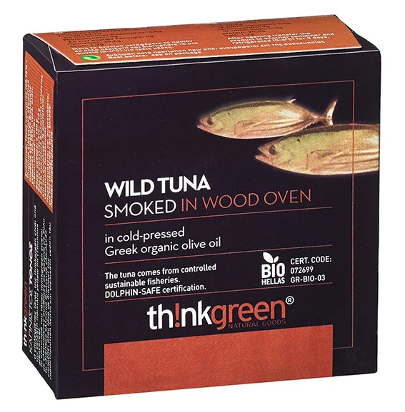 Thinkgreen smoke their selected yellow fin tuna on smoke coming from burning wood chips of beech, pine and oak. The combination of smoked tuna meat with organic Greek olive oil of Thinkgreen, which is later added, allows the creation of a brilliant and original flavour.